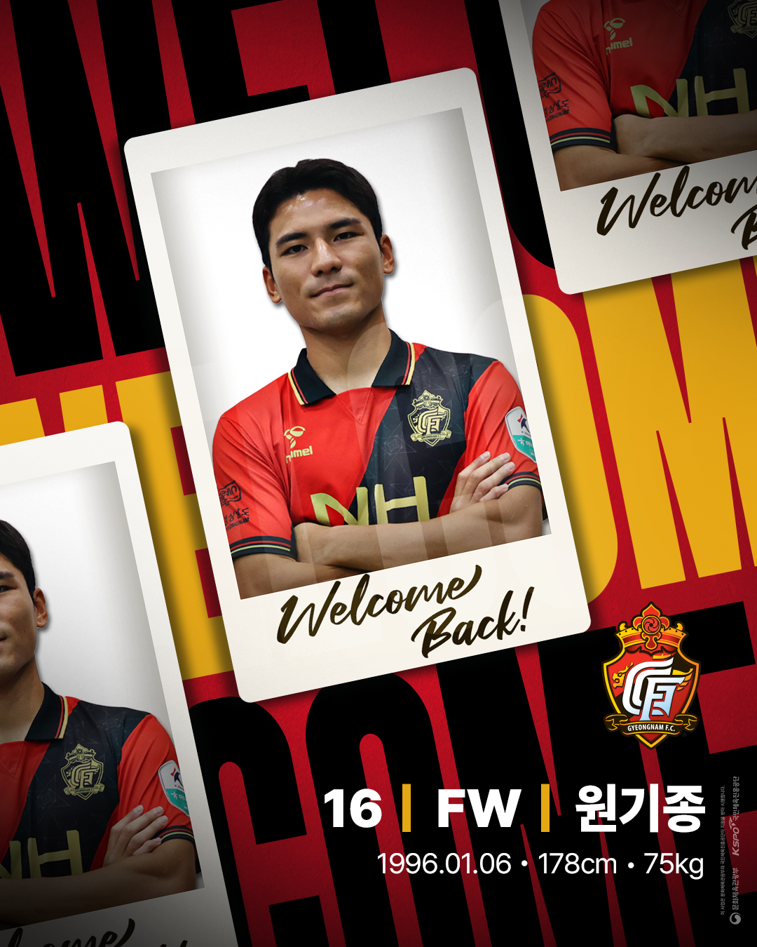 김천상무 9기로 입대한 원기종은 K리그1 무대에서 22경기 6득점을 기록하며 특급 조커로서 한 단계 도약한 모습을 보이기도 했다. 더 발전된 모습으로 복귀한 원기종의 합류로 경남은 확실한 득점 생산 루트와 옵션이 추가됐다.