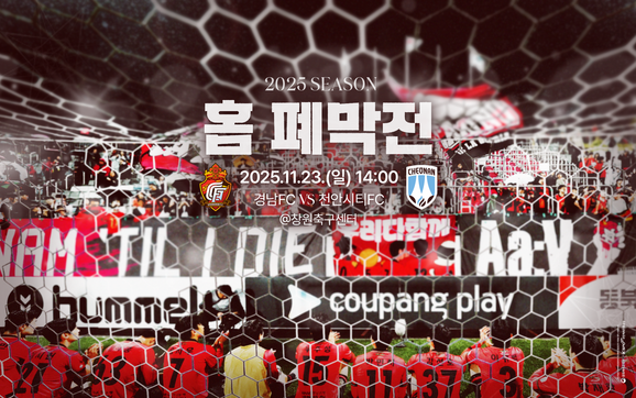 경남은 오는 11월 23일(일) 오후 2시 창원축구센터에서 ‘하나은행 K리그2 2025’ 39라운드 천안시티FC와 홈 최종전을 치른다.