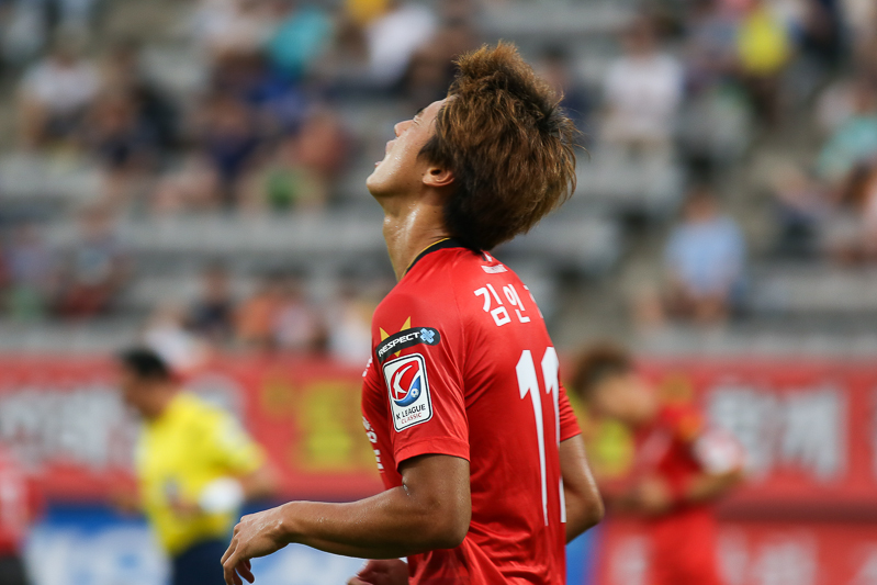 슈팅기회를 놓치고 아쉬워하는 김인한 선수의 모습.