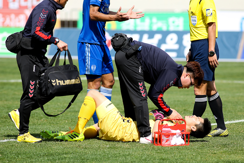 부딪혀 고통에 몸부림치는 김영광선수