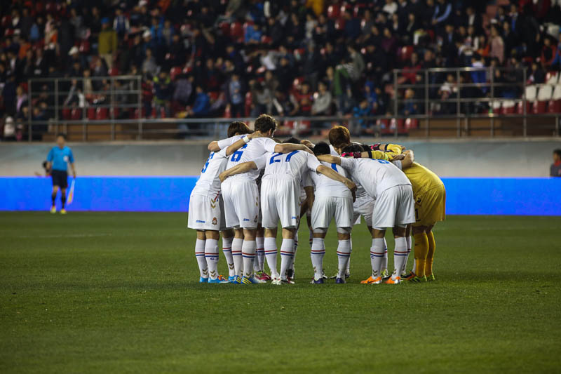 경기시작전 다같이모여있는 경남fc 선수들